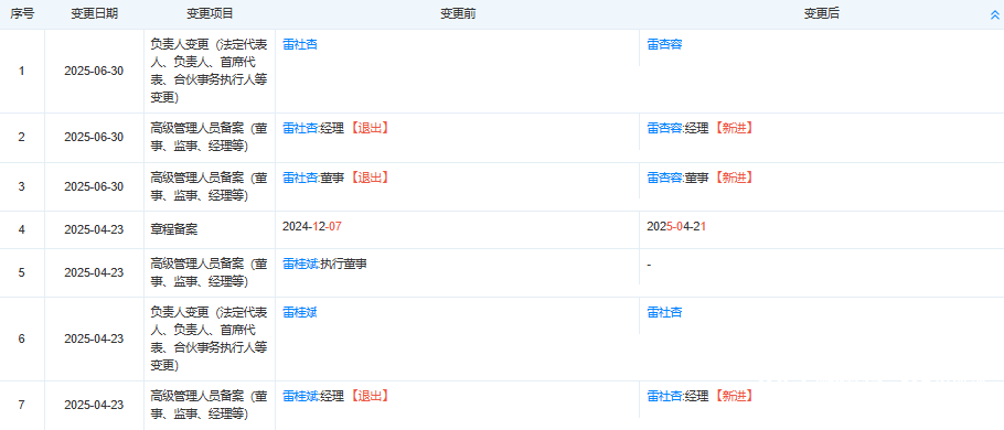天眼查信息显示,6月30日,深圳罗马仕科技有限公司(以下简称“罗马仕”)法定代表人由雷社杏变更为雷杏容,前者同时卸任公司董事、经理职务,相关职务均由后者接任。